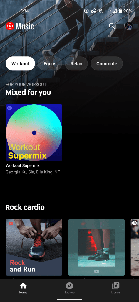 The top of the Home feed now features four filters: Workout, Focus, Relax, and Commute. Tapping an item on the “activity bar” will reload the feed with personalized recommendations and playlists for that “everyday” task.