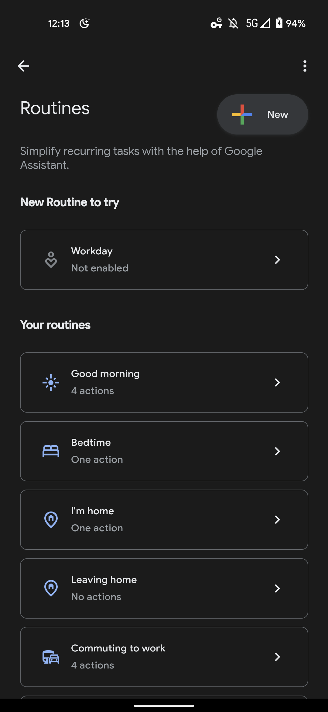 Like before, Routines can be accessed from either the Google Home app or Assistant Settings. The former entry point was just revamped, and the latter is now getting a similar treatment. The new list features an oval FAB that is placed in the top-right corner of the screen.