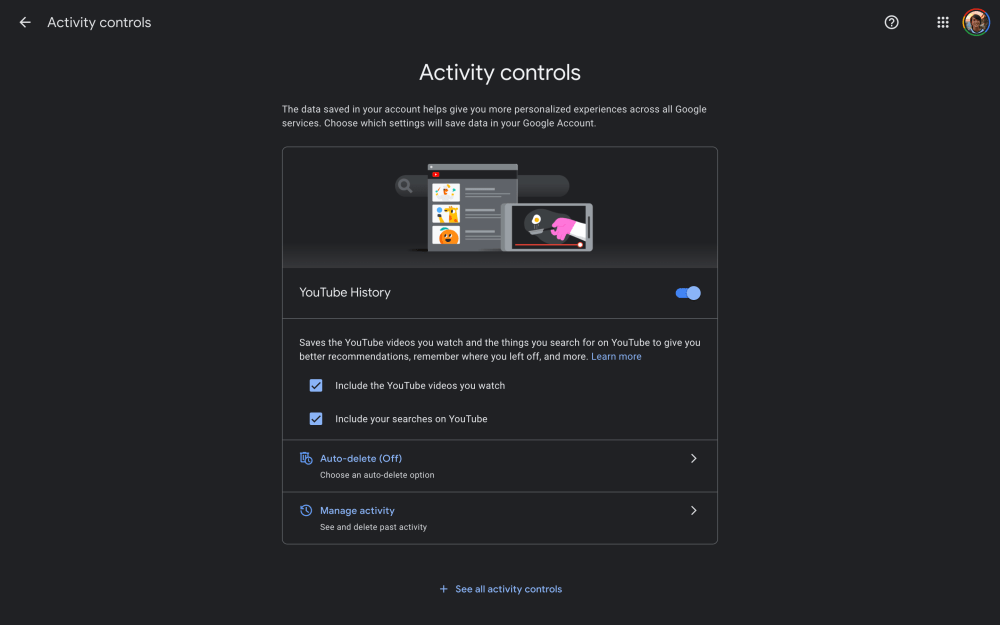 The activity you keep helps Google make services more useful for you, like helping you rediscover the things you’ve searched for, read, and watched.