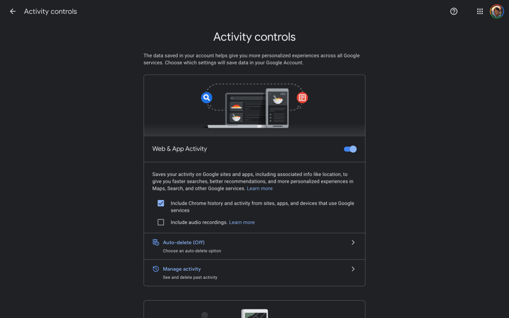 Google granularly records how you interact with its apps and services. Launched in 2016, “My Activity” lets you “see and delete your activity using the controls on this page.”