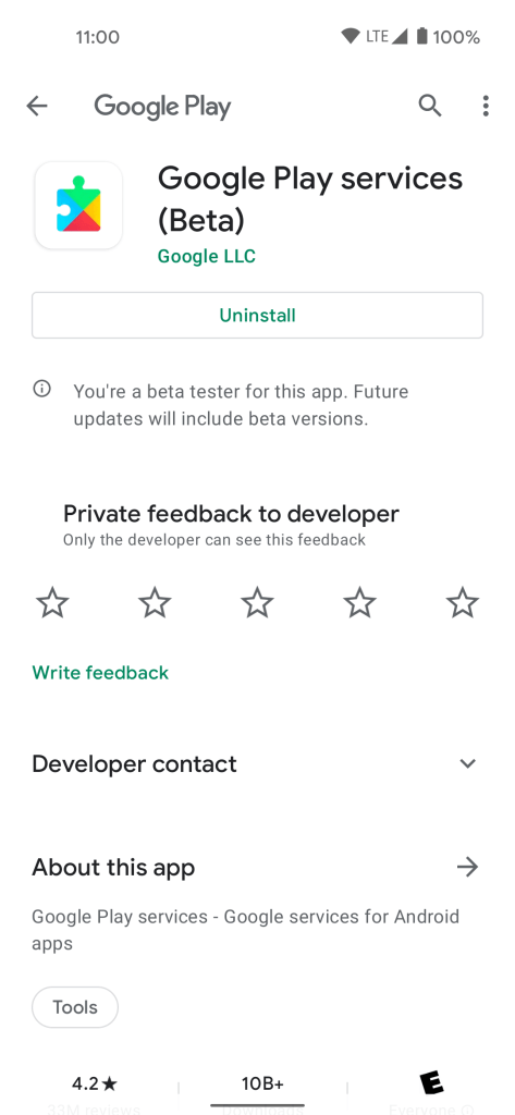 Once it’s been properly reverted, the next step is to actually reinstall the latest Play Services update. The fastest way to do this is to go to the Play Services listing on the Play Store, which can only be found through a direct link.