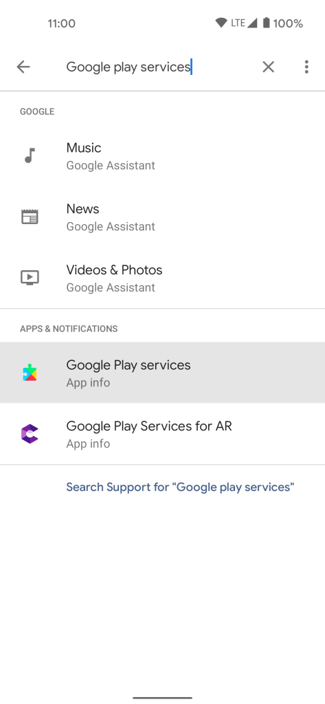 If the benefits of getting the latest Google Camera or Recorder app still outweigh those consequences, then head to the Settings app. In the search bar at the top, type in “Google Play services” and tap on the appropriate listing.