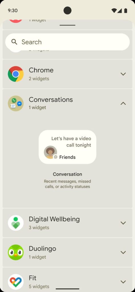 Another aspect that jumps out in the leaked mockups is that Android 12 may add special “Conversations” widgets for use on the home screen. Each of these widgets seems to represent something like a friend who you haven’t talked to in a while, or a missed call you should probably return. Details are a bit scarce for now, but it seems right in line with Google’s efforts toward “making a People-focused operating system.”