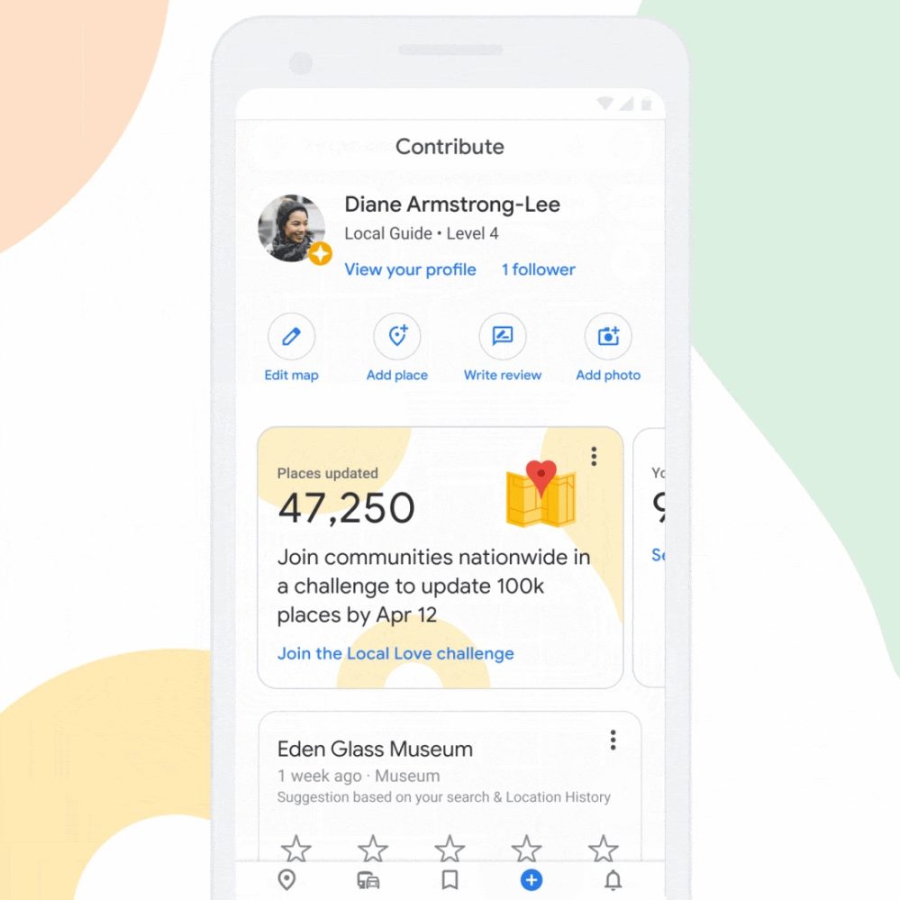 On this front, Google is running a nationwide “Local Love” challenge in the US to “rally helpful reviews, photos and updates” for local businesses. It will run for a month with status updates and a feed of what you can personally submit available in the “Contribute” tab on Android: