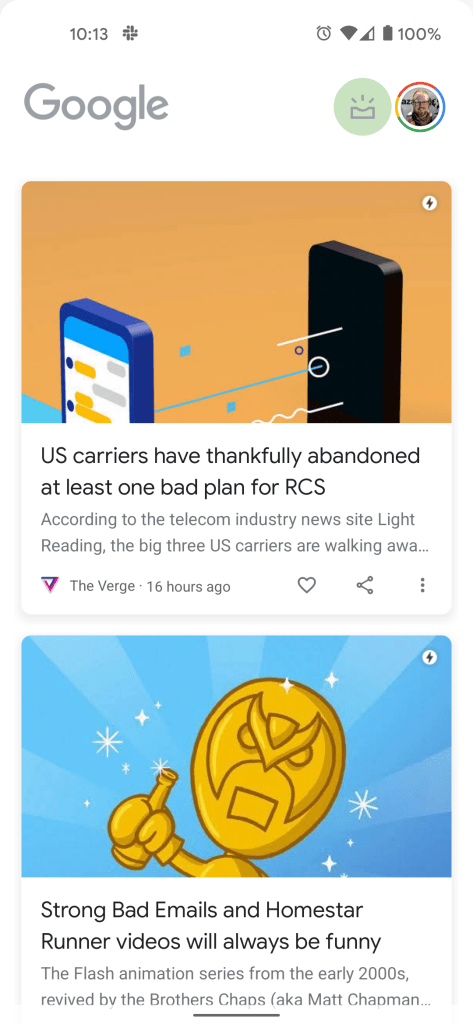 The latest beta version of the Google app includes a redesign of the homescreen Discover feed on Android 12 that revamps the header and removes the search bar.