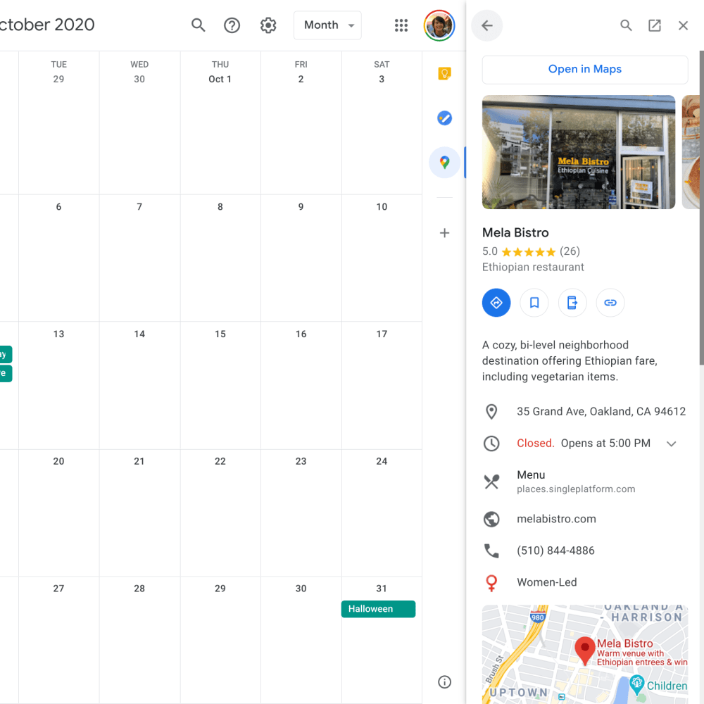 The Google Maps add-on in Calendar is very well done and feature-complete. Most users can get everything they need done from this compact experience. It’s fast and saves time, with the side panel being Google’s initial exploration into letting people access other apps in one screen.