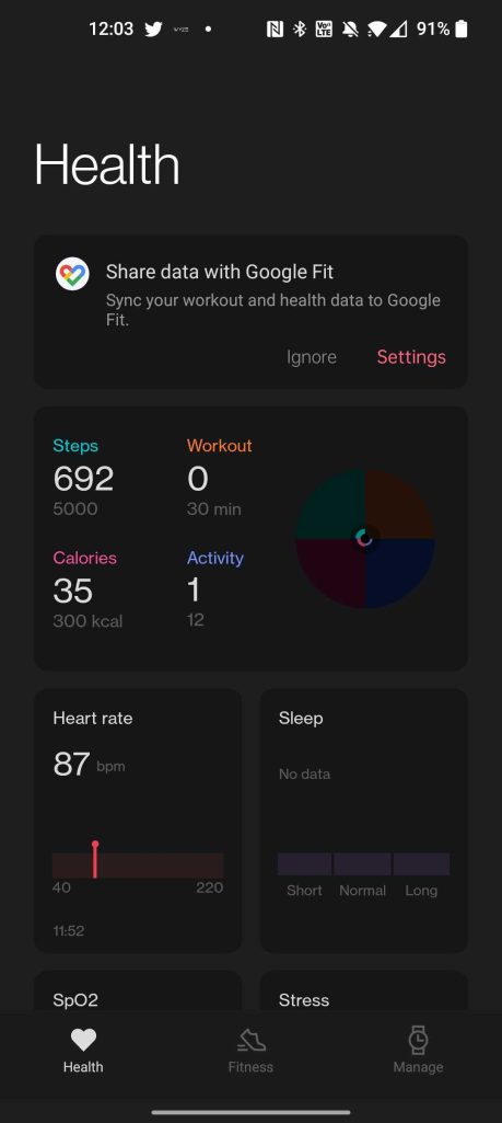 It’s no secret that fitness tracking is what sells wearables nowadays, and in a smart move, that’s something OnePlus has focused on with this smartwatch. How does it compare? Being honest, I’m not the person to ask about this, as I don’t have nearly the amount of time I want to get out walking or properly work out, but I can speak from limited experience compared to a Fitbit Versa 3.