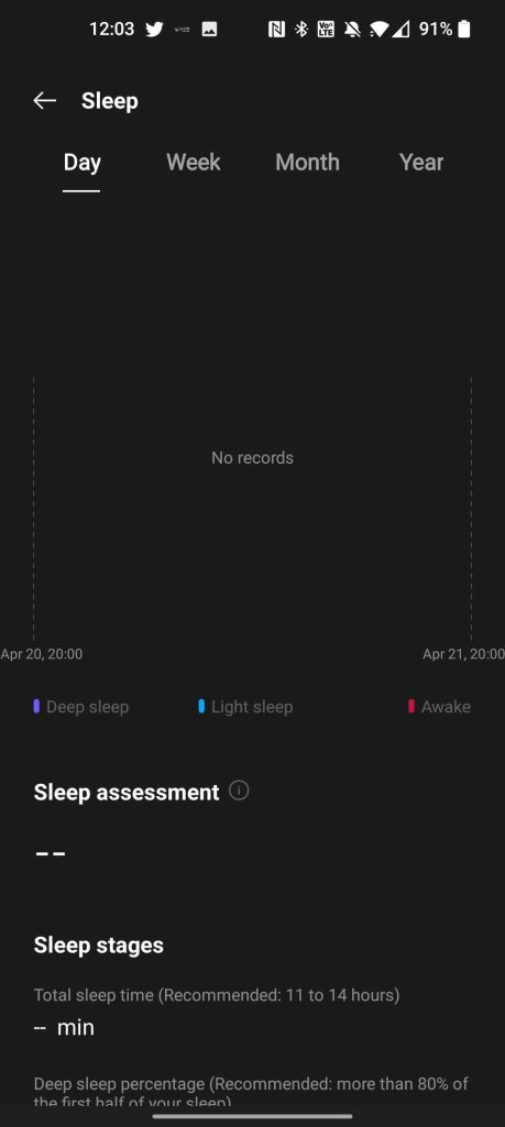 Another place this is evident is in sleep tracking, a pretty key feature for a watch that advertises up to two weeks on a single charge. Sleep tracking in itself seems to work, as the numbers it recorded for me are roughly the same as what I see from the new Nest Hub’s Soli-based tracking. I didn’t directly compare it to Fitbit, but the numbers are in the same ballpark with the exception of time spent “awake,” where Fitbit notoriously tends to count higher than the competition. What’s the problem, then? None of this data leaves the watch. There’s an entire section of the OnePlus Health app that’s designed to house sleep data but at press time it just doesn’t. OnePlus tells us a fix for this is coming in “mid-April” (in other words, last week) but it’s flabbergasting that the watch has gone on sale with this core function completely broken and utterly useless as a result.
