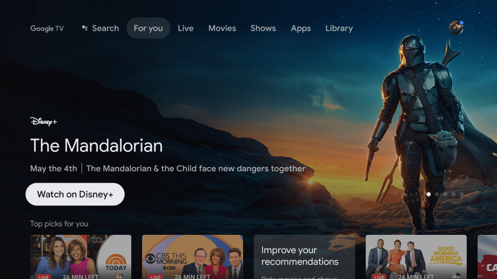 If you turn on a Chromecast with Google TV or one of Sony’s latest Bravia models, you’ll probably be greeted with Star Wars alongside the rest of your content. Google’s celebration of one of sci-fi’s most popular properties starts with featured sections on Google TV’s rolling banner for The Mandalorian and A New Hope.