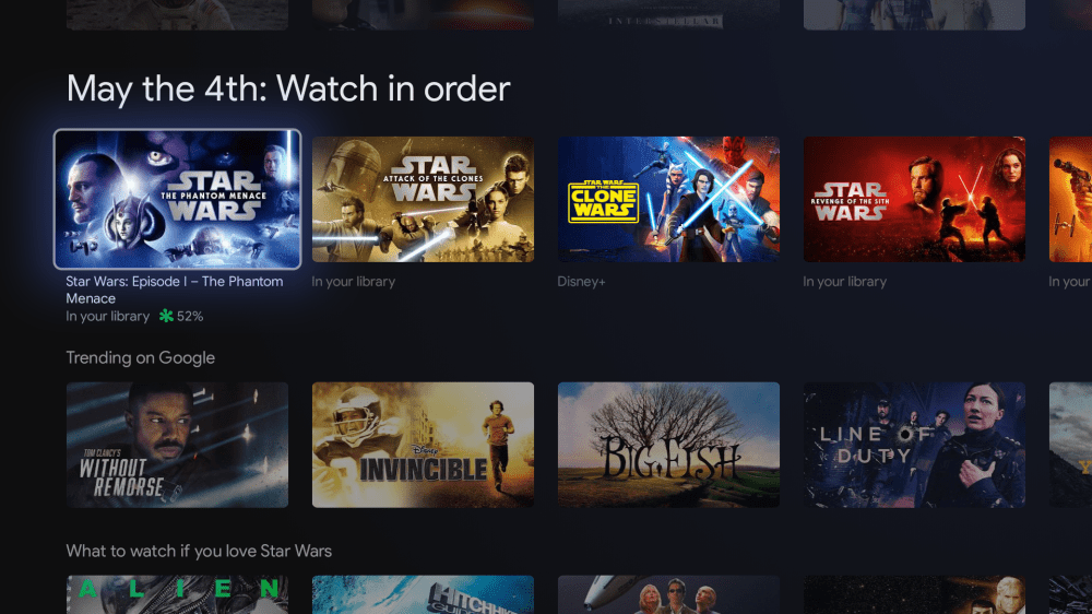 Beyond that, there’s a new May the 4th row on the Google TV homescreen that’s dedicated to Star Wars content. Making it even better, this new row is set to show every piece of Star Wars content in chronological order. The full list can be seen below.