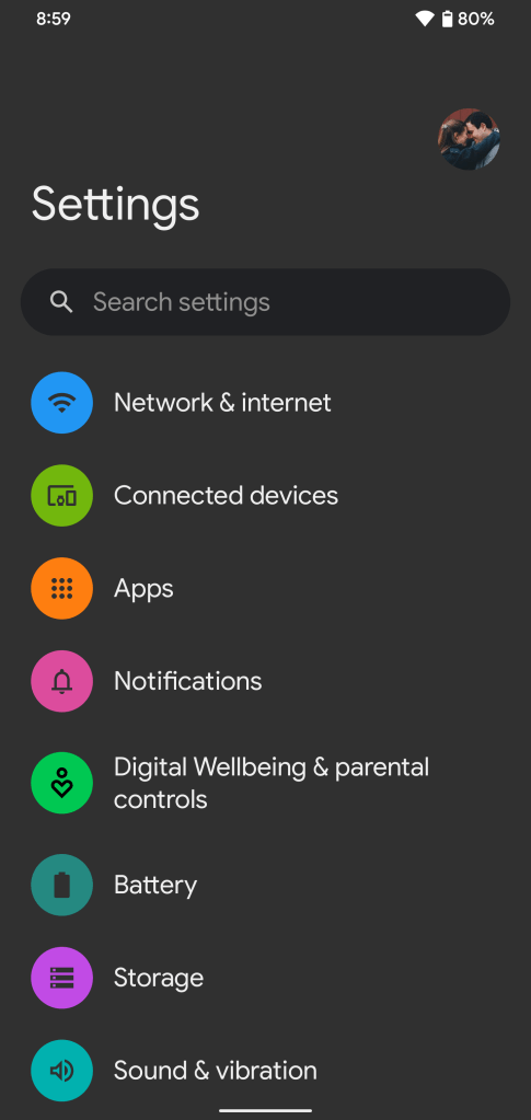 Some of the other places you can see the change include the volume slider, which is considerably bigger, and the quick settings menu. Beyond the bigger overall tiles, the brightness slider also adopts a radical new design. As was live in the third developer preview, too, the Settings menu has been entirely redesigned since Android 11.