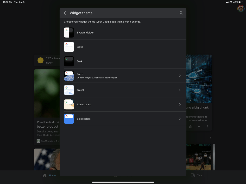 Themes for the Google widgets on iPhone and iPad are now widely rolled out with the latest update.