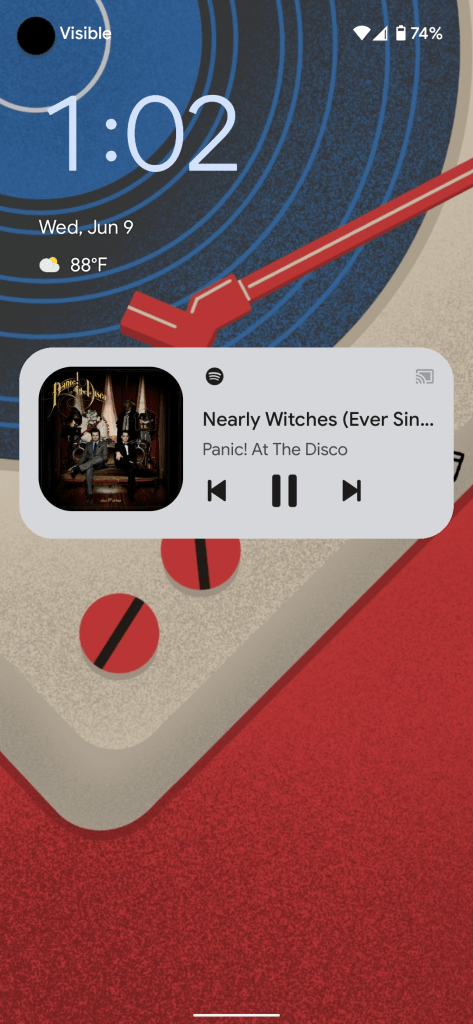 With today’s Android 12 Beta 2 update, the media player has been ever so slightly rearranged to help it take up less room. First, your music app’s logo is moved from its own line to being set in the corner of the album art. To help better distinguish the app’s logo, the usually black logo is now colored using your Material You color scheme, based on your wallpaper.
