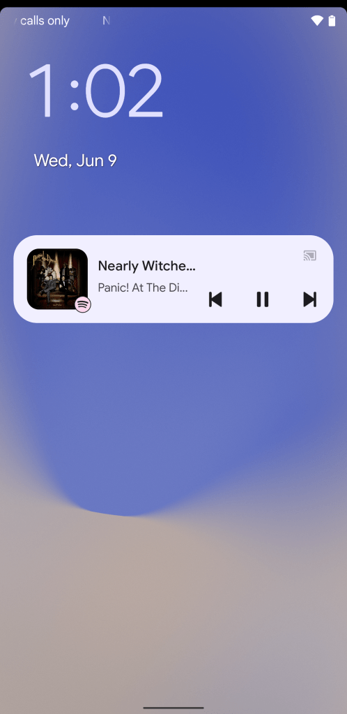 Next, the media controls themselves — previous, play/pause, skip — have been moved to the bottom-right corner instead of being on their own line. Between that move, and the shrinking of the album art, the media controls now take up a smaller amount of space, vertically.