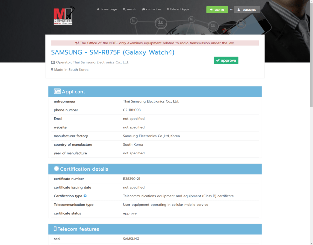 In the past day or so, regulatory listings for the Galaxy Watch 4 series popped up on NBTC, essentially the Thai equivalent to the US FCC. There’s not a whole lot we can gather from these listings, though the model numbers mentioned haven’t been seen before and appear to be LTE versions of the product.