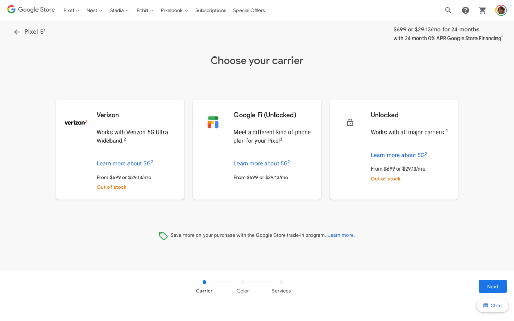 Google Fi matches the current availability on the US Google Store, where the Pixel 4a 5G is entirely out of stock. Similarly, the unlocked and Verizon Pixel 5 models are currently “out of stock.” This is also the case at Amazon and B&H Photo.