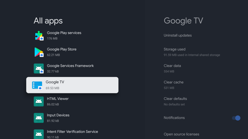 That said, this situation can’t be blamed solely on Google’s hardware. Some app developers are also not being conscientious about the limited storage space of Android TV / Google TV devices. Netflix and Plex, for instance, probably shouldn’t each take up over 130MB of storage. Nor do I believe that the “Google TV” app needs to have over 500MB of data cached on a device with only 8GB of storage total.