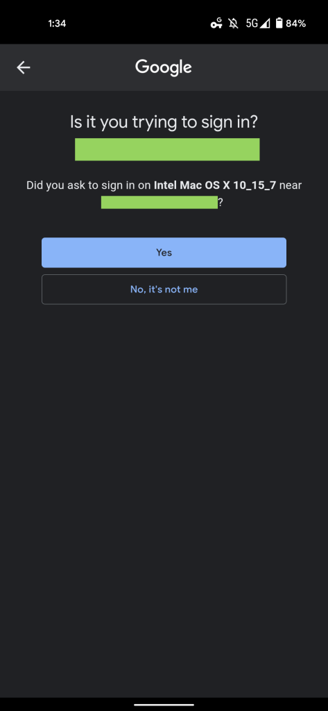 Google is now using the Chrome for Android app as another 2FA security key method. Upon entering your credentials on a laptop, you will get the usual “Are you trying to sign in?” notification that opens a fullscreen page with “Yes” and “No, it’s not me” at the bottom. Google notes how: