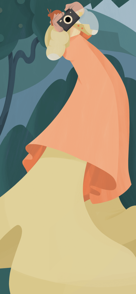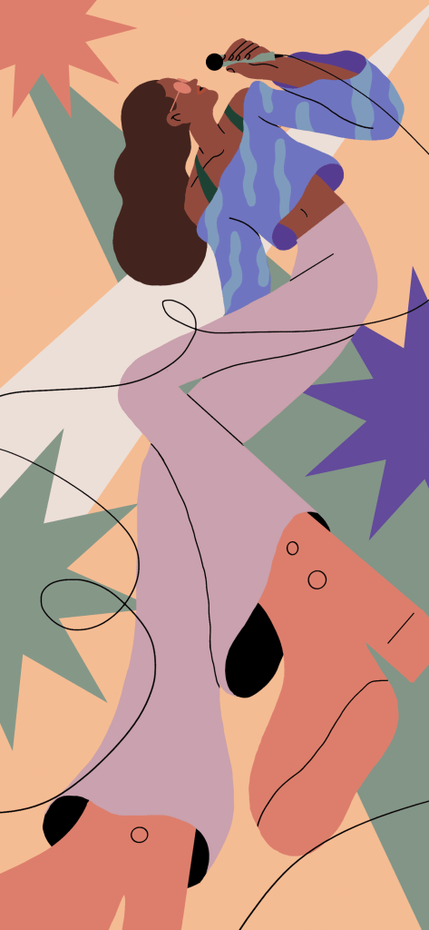 Leaving the produce aisle behind, there are a number of person-centric wallpapers, such as “Street Art,” which shows someone listening to music while spray painting a wall mural. Meanwhile, “Karaoke” features a woman singing and holding a microphone in the perfect spot to fit under the camera.