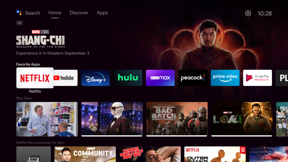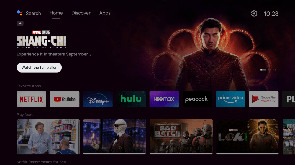 Android TV users may currently be seeing a homescreen ad from Disney/Marvel for the upcoming film Shang-Chi and the Legend of the Ten Rings. The ad sits at the start of the homescreen’s carousel and links to a trailer of the movie on YouTube with the message “Experience it in theaters September 3.”