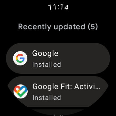 Update 8/12: Google has widely rolled out the Material You Play Store on Wear OS three weeks after officially announcing the redesign. Some apps like Google Fit still need to adjust their icons to the new crop, while the larger buttons/touch targets make tapping much easier.