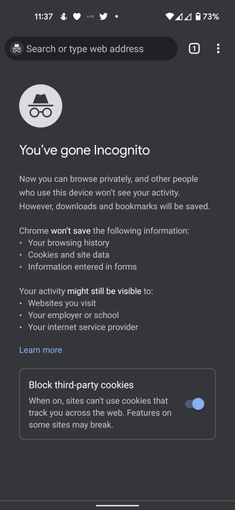 This new version of the Google Chrome Incognito tab doesn’t change the overall look drastically, but instead changes the design of the disclaimer that the browser has used for quite some time. Instead of saying what information Chrome “won’t save” and saying who can still see your activity, Google clearly spells out “What Incognito does” and “What Incognito doesn’t do.” Interesting, the toggle for blocking third-party cookies has been removed with this new design, too.