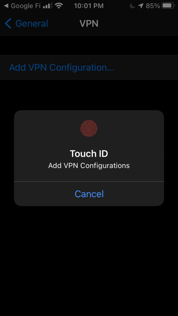 Pop-ups will appear to confirm the feature (Got it > Allow), and then you enter your passcode/fingerprint/Face ID. “VPN” will appear in the top iPhone status bar when you’re connected.