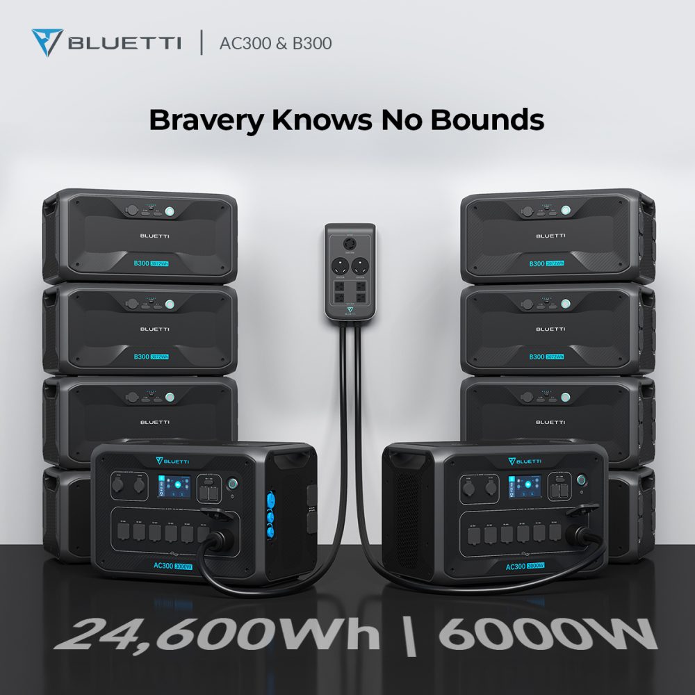 Better yet, with the help of the new Fusion Box Pro, you can connect a second AC300 to double your capacity to as high as 24,576Wh and up to 6000W output. This same upgrade also allows you to run any equipment that requires 240V electricity.
