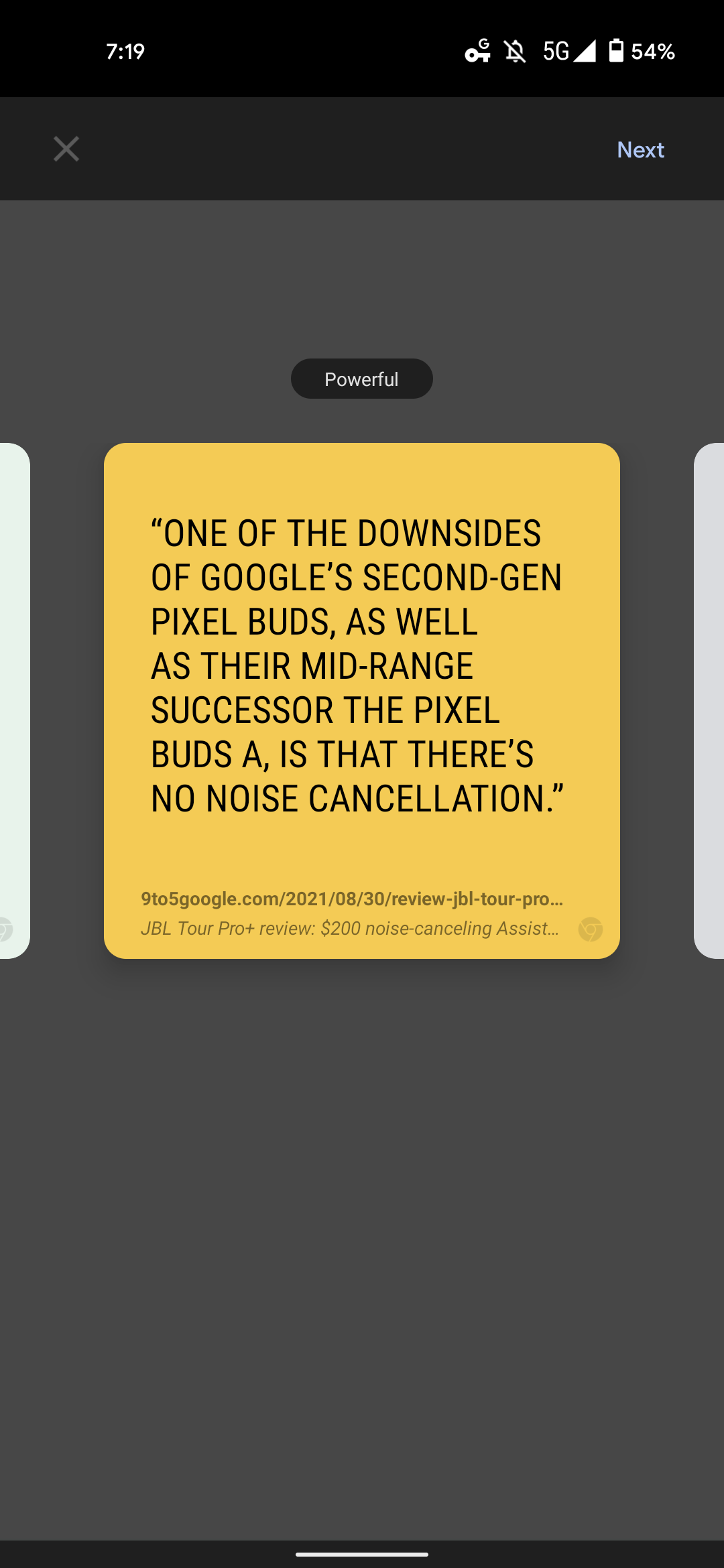 Back in May, Chrome for Android’s custom Share menu gained a built-in screenshot editor. The latest tool there is “Create card” with users able to access by selecting a passage and then tapping “Share” on the resulting toolbar.