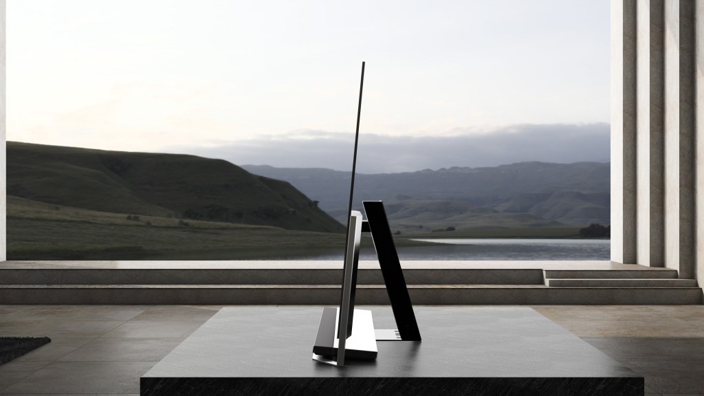 Given the slim size of the TV, TCL includes Onkyo-tuned drivers in a 5.1.2 soundbar that is separate from the panel itself. There’s also a subwoofer as part of the package. TCL includes the soundbar as part of a “versatile integrated stand” that can be used for wall mounting, on a table, or on the floor. There’s also a built-in, pop-up camera in the TV that can be used with Google Duo for video calls.