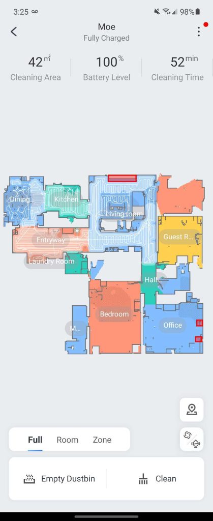 Once paired together, though, functionality is definitely limited. You can easily start cleaning based on your previous settings using a “Hey Google” command, but the robot will only take that to clean the entire home. You can’t, for instance, ask Assistant to start cleaning in one specific room. This is functionality I’d love to see added, but it might take some work from both Google and Roborock/Xiaomi to pull it off.