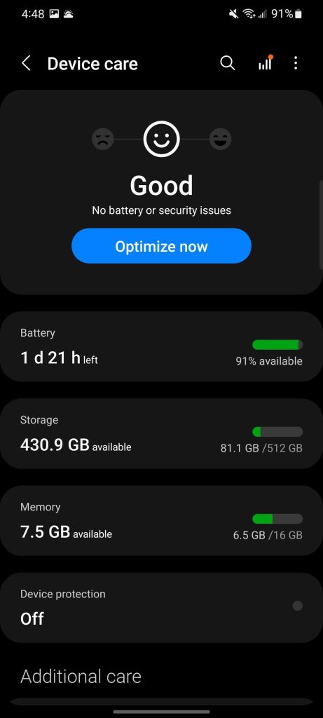 In the quick settings menu, Samsung has adopted a rounded, thicker slider bar for brightness. Notifications also have a condensed design by default that removes the “alerting notifications” and other section titles, but doesn’t remove the functionality. The widget picker also gets a new look reminiscent of what Google has added to the Pixel Launcher in Android 12 previews. The “Device Care” dashboard also gets a minor redesign, as did the camera app.
