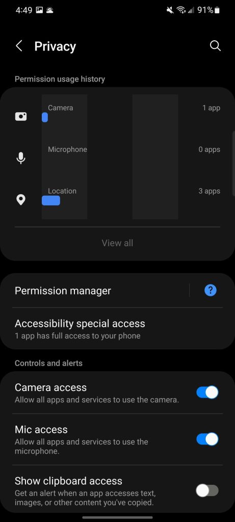 You’ll also see a constant identifier on-screen when the camera and/or microphone is in use. Samsung also gets the quick shortcuts to fully block the camera and microphone system-wide that Google added in Android 12 beta builds. Rounding out privacy, apps can now be given an approximate or precise location depending on what you feel they need, which is always great to see.