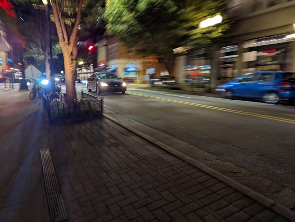 Action Pan is a very clever idea that locks focus on a moving object and shows the motion in the scene around it. Google’s example of a biker is a great one because it allows a decently sized moving subject that’s usually moving pretty quickly through a scene. To get a good result, though, the movement needs to be two-fold. There’s the subject, but also you as the photographer who needs to be moving slightly to ensure the background is properly blurred. Solely from a technical standpoint, it’s incredible that Google can get anything out of these conditions, much more so anything remotely usable. Yet, even at night, I’m pretty impressed by what this feature puts out in the right conditions. A happy little pupper running in your direction is not the right condition.