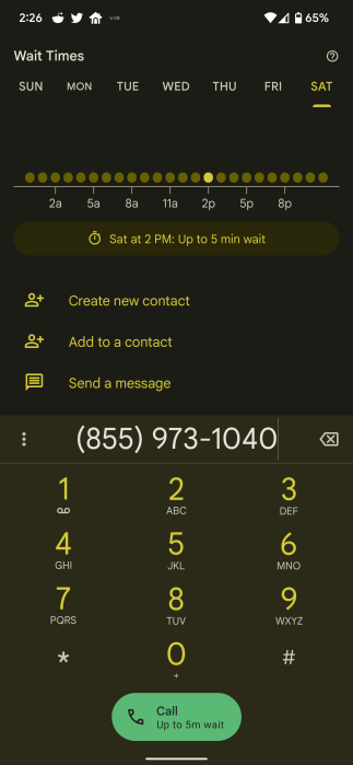 There are several other new features on the Pixel 6. These include improved device search in the app drawer, “Direct my Call,” which displays a visual menu for toll-free lines, and “Wait Times,” which shows an estimate of how busy that line may be. These are both brilliant ideas, but I’ve not been able to test them properly. In a test with the DoorDash customer service line, Wait Time worked perfectly, as pictured below, but the Direct my Call menu didn’t trigger on my first go-round. As it turns out, the feature is disabled by default. While trying to get a repair done on a home appliance this week, too, neither feature triggered on the standard Electrolux helpline. There’s potential for both of these, but they probably need a bit of time and wider use until they can manage to work consistently.
