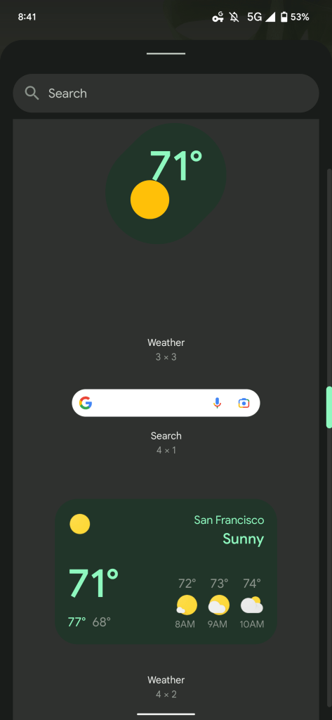 The Material You weather widgets were first introduced with Google app 12.41 and this update is available with the 12.42 beta. Google released a slew of widgets in the lead-up to Android 12’s launch and is now making various functional refinements. That said, brand-new ones are still set to arrive for Gmail, YouTube Music, and Google Drive.