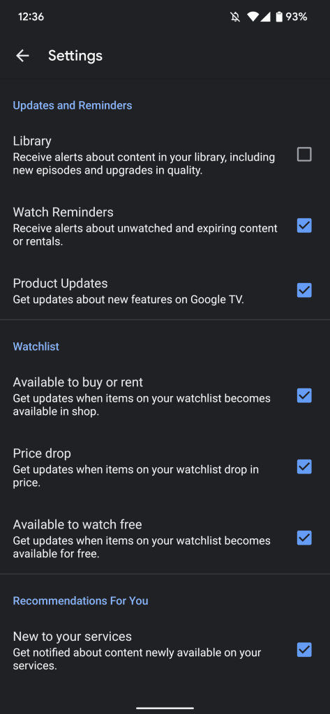With Google TV 4.29, rolling out now via the Play Store, we find a new option buried deep within the app’s settings – though luckily it’s enabled by default – that will notify you when a show or movie on your watchlist becomes available “for free.” You can find the toggle (instructions for those still on Play Movies & TV will be a bit different) by tapping your profile picture and choosing “Google TV settings.” From there, tap “Update notification preferences,” and on that page, you’ll see the below option: