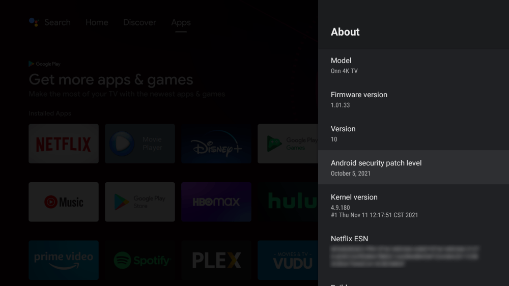 True to that list, installing the 674Mb OTA does bring the October 2021 security patch, updated from the previous August patch. There’s also a version update to the home launcher. Notably, though, this device already supported Android TV’s “Discover” layout. Anecdotally, we didn’t notice any major differences in Netflix performance either.