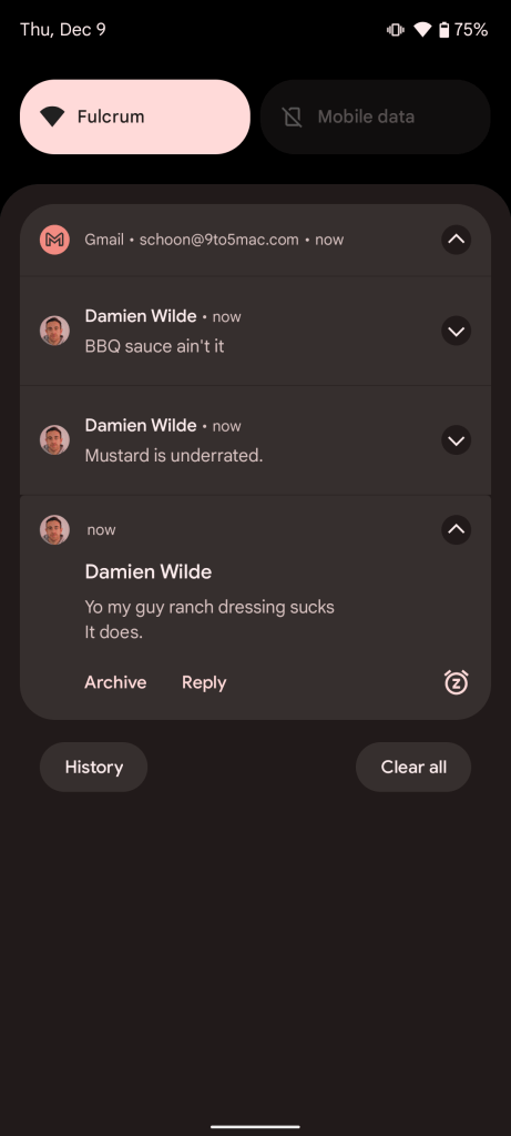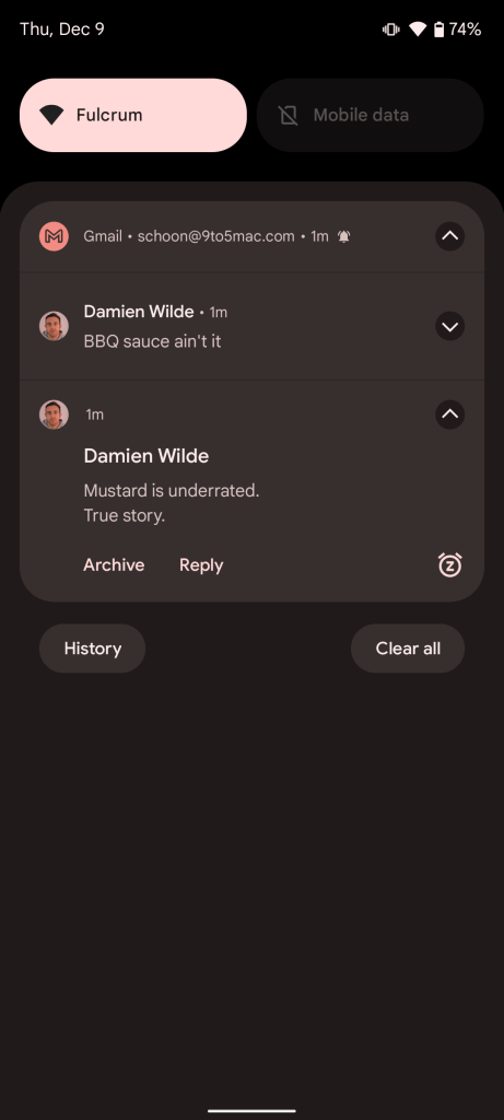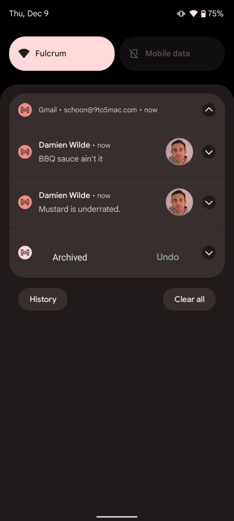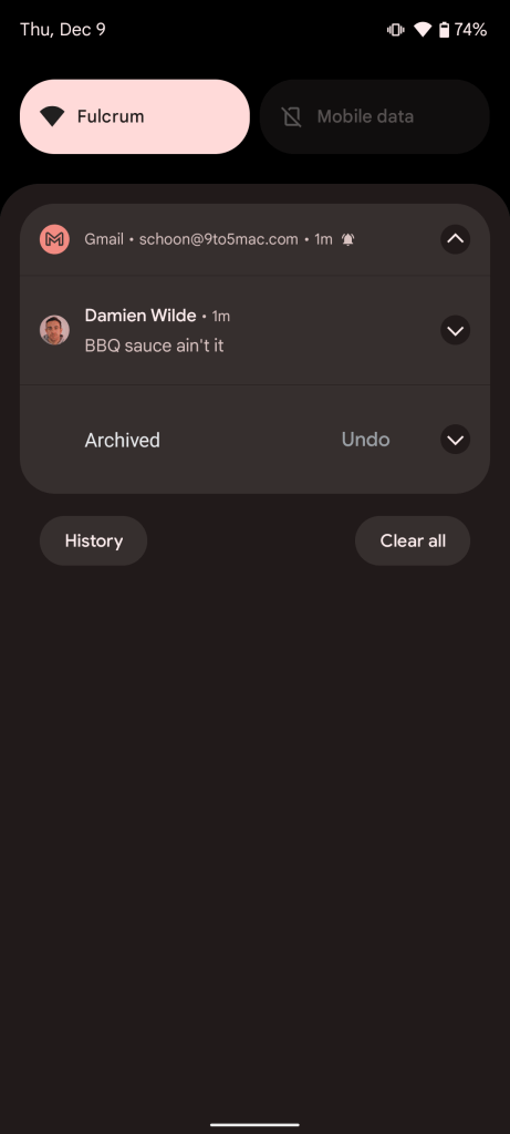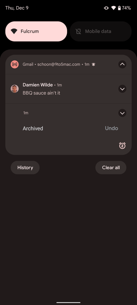 Recapping the situation, Gmail for Android has long offered the quick action ability to archive an email directly from the notification shade. This happens instantly, but the notification sticks around for a few seconds with a prominent “undo” button to reverse the action if it was done by mistake. Very useful!