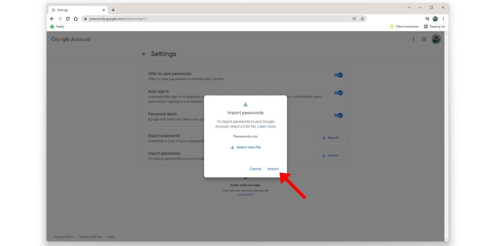 - Open Google Chrome on the device you saved the CSV file to and type in “passwords.google.com.”