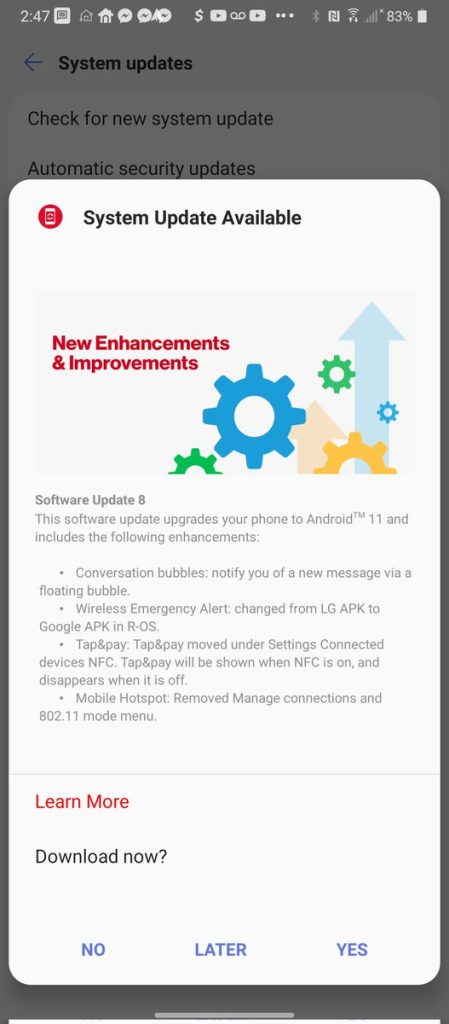 Update 12/24: We’ve also seen evidence that T-Mobile is rolling out Android 11 to its version of the LG Wing.