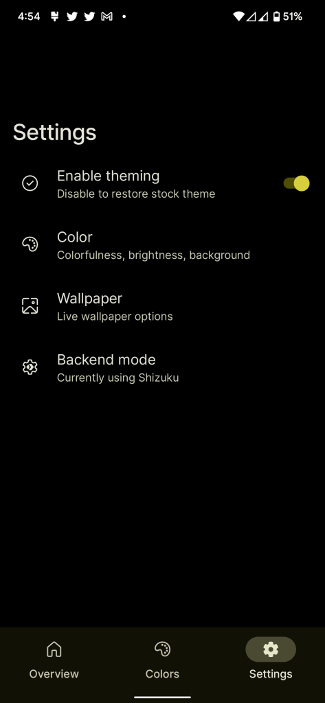 What’s the catch? Originally, there wasn’t one. Repainter didn’t require root, just the use of another tool known as “Shizuku,” which is available in the Play Store and allows apps to run ADB commands locally on the device. Once that app was set up, Repainter worked pretty easily.