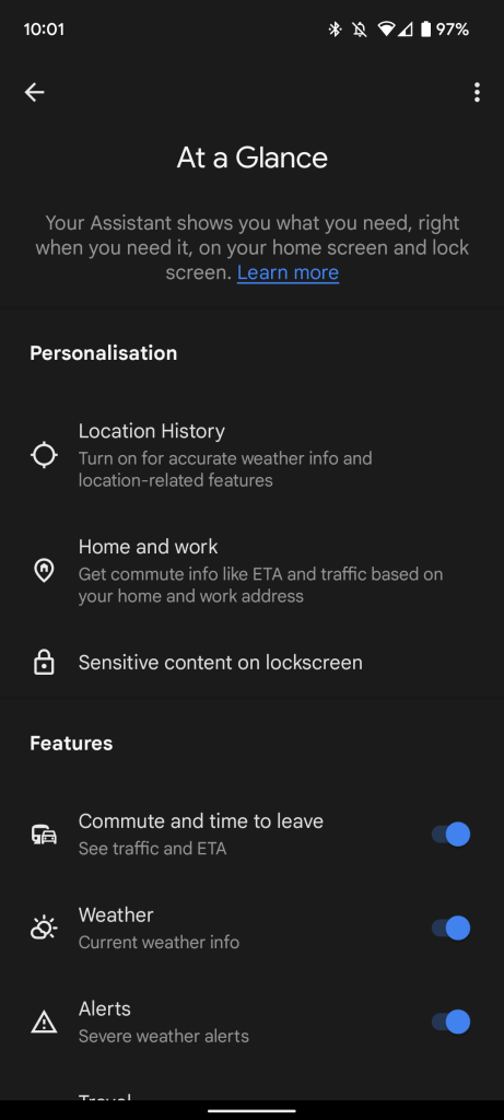 As spotted by Mishaal Rahman through tipster Nick Cipriani (h/t Android Police), a server-side update along with beta version 13.0.6.29 of the Google app brings a number of new options for the At a Glance widget including doorbell video previews, more reminder options, and what seems to be a brand-new settings menu layout:
