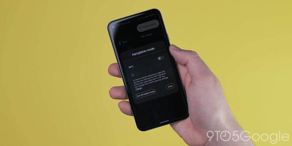 Another new feature here is a new toggle that will allow you to quickly disable or turn off Airplane mode when attempting to activate on device Wi-Fi. When you’re in Airplane mode tapping the Wi-Fi or Internet toggle will offer up a button to just exit quickly but you can still keep other connections deactivated and enable Wi-Fi if you wish.