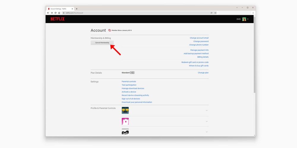 - Toward the top left, you’ll see a button that says Cancel your membership. Click it.
