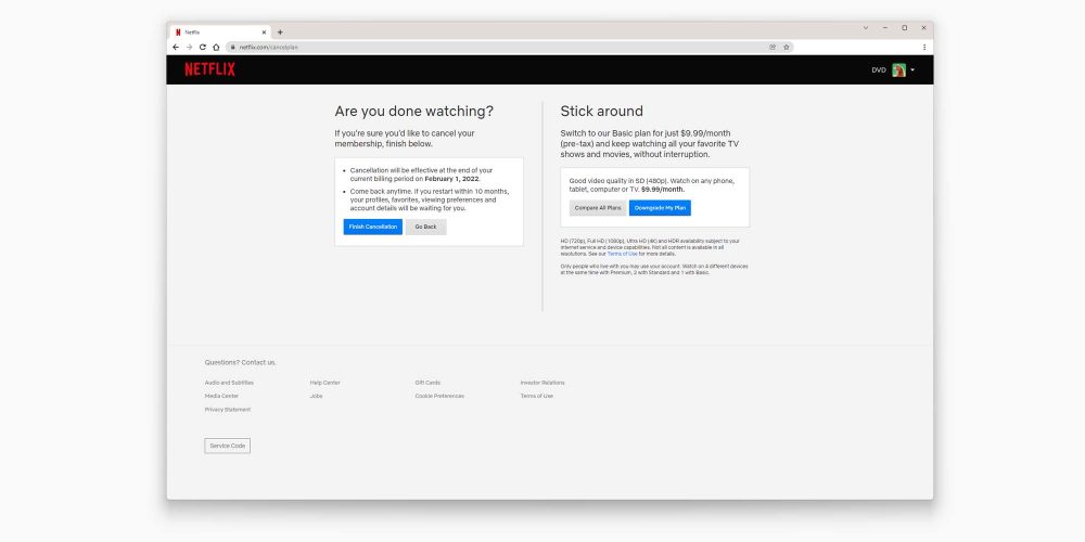 That’s it. You should receive a confirmation email letting you know that your subscription is officially over. According to Netflix, if you sign up again within 10 months of canceling, you’ll be able to keep your profiles, favorites, and account details.