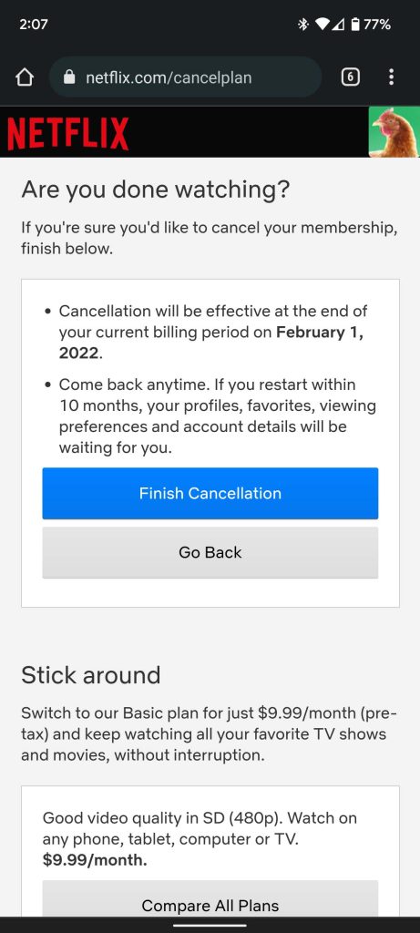 It’s just as easy to cancel your Nextflix membership on Android devices as it was to sign up. Other than asking if you’d like to stick around, there aren’t many hurdles to jump through to get rid of your subscription.
