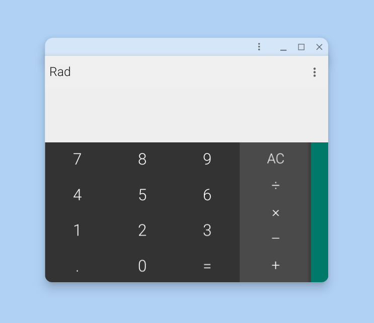 Reading through the code, we were able to piece together a close approximation mockup of what these first steps of a Material You redesign for Chrome OS may look like. In this example, we’ve taken the built-in Calculator app, made the window’s top bar a bit transparent, and given it the newly rounded corners.
