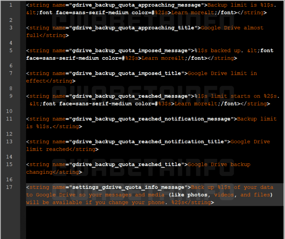 Previous information arose indicating that WhatsApp is working on chat backup file management which would certainly help reduce the effect on your Google Drive limit. A number of code strings within the latest WhatsApp beta build show preparation for the introduction of Google Drive backup limits with warning messages and onboarding information also included: