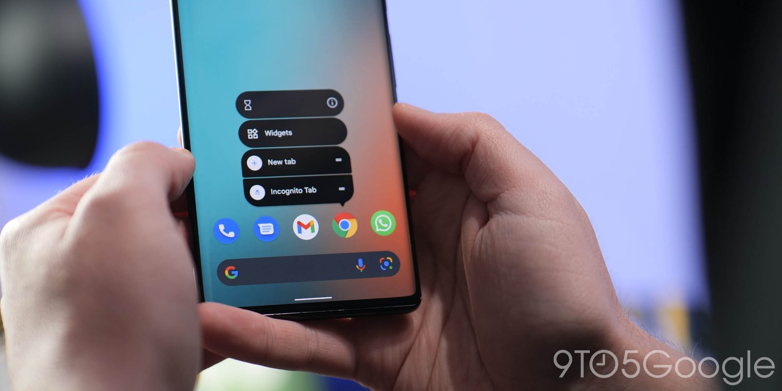 Like other apps updated for Android 12, Chrome is getting new widgets. “Chrome Shortcuts” is the highlight with two main layouts. The 4×1 configuration offers a pill-shaped “Search” field that immediately opens the Chrome Omnibox to quickly enter a URL or query. This is followed by a microphone that lets you start a voice search, open an Incognito tab, Google Lens, and even the offline Dino game.